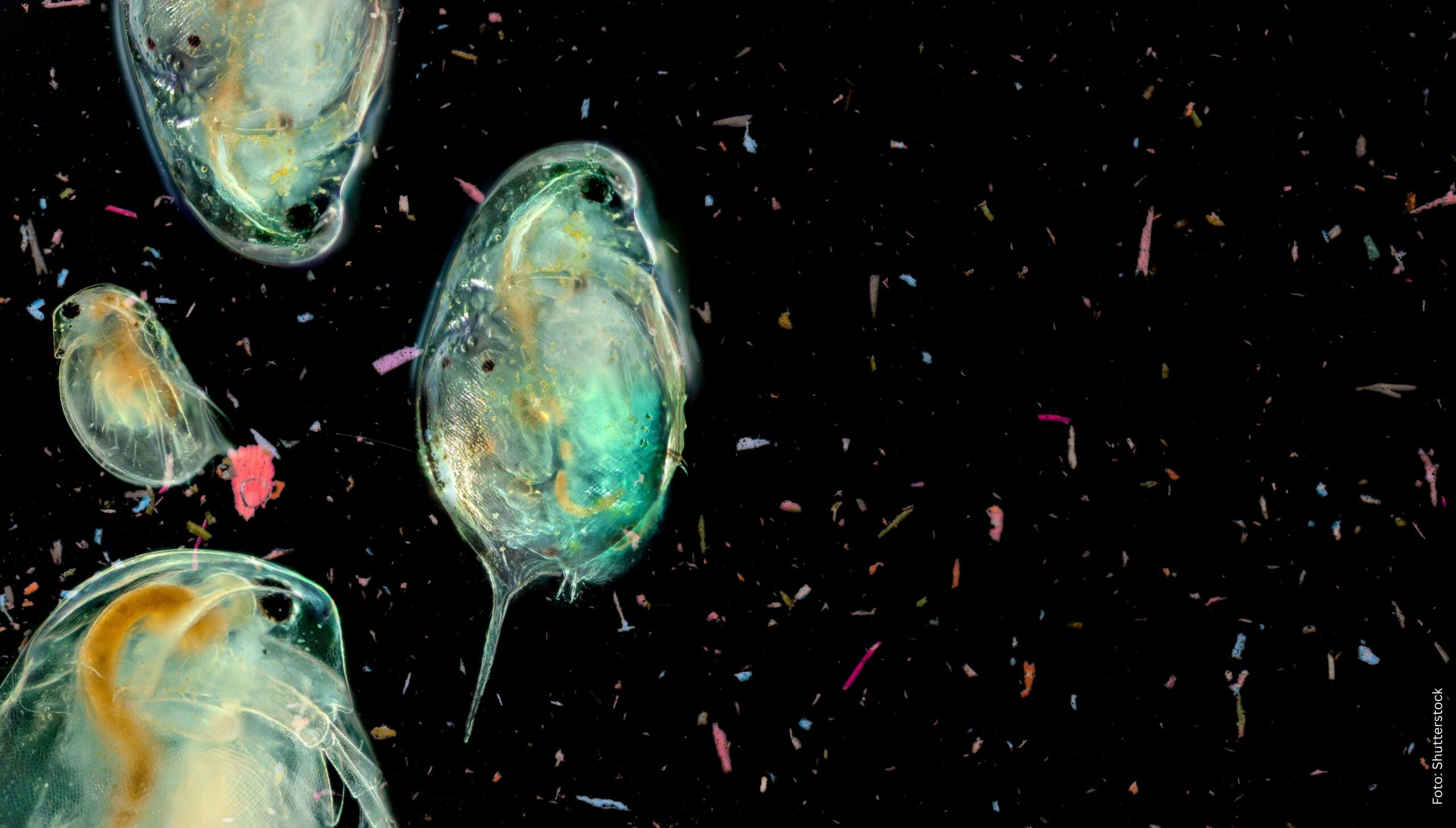 Mikroplastik unter dem Mikroskop: Plankton im Wasser, das mit kleinsten Plastikpartikeln verunreinigt ist.